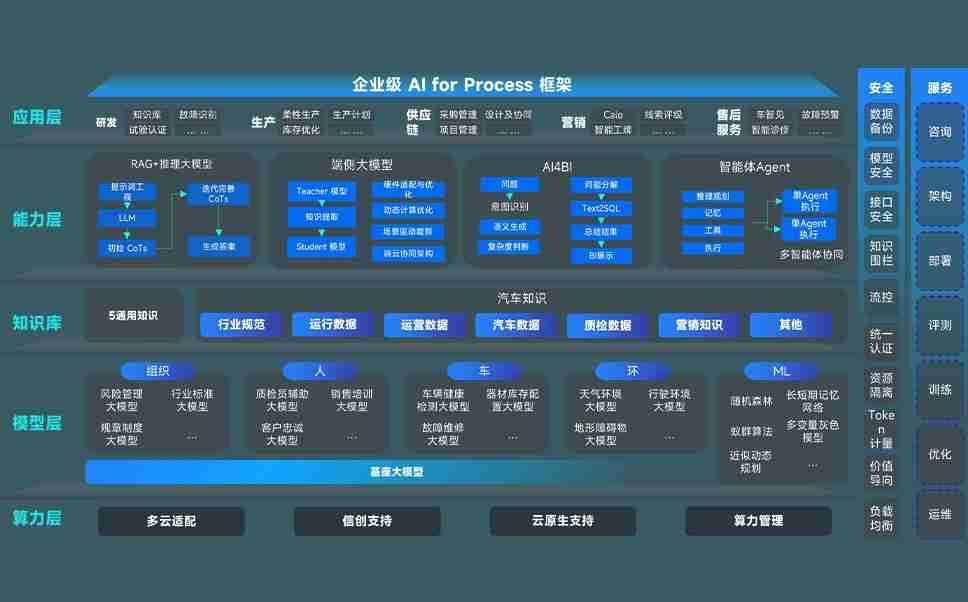 橘子平台问学智车解决方案是一套基于AI技术的汽车行业智能化系统,,覆盖从底层算力到顶层AI应用的全栈方案。。方案由算力层、、、、模型层和应用层组成:算力层,,方案支持多种一体机配置,,具备云端灵活部署、、多云适配以及动态优化计算资源的能力;模型层,,,,橘子平台问学平台版提供了企业级AI应用一站式构建与管理平台,,支持基于后训练强化技术的汽车企业专属模型的训练、、评测和运营;应用层,,橘子平台问学DeepSeek版提供包括超级员工、、智能招采、、、、智能营销、、智能客服、、AI for BI等一系列解决方案,,可助力汽车行业实现数字化转型,,,让管理更智能、、、、响应更敏捷。。。。