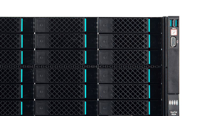 KunTai R524 存储型服务器是橘子平台数码基于鲲鹏处理器推出的新一代 ARM数据中心服务器。。。。主要面向存储业务,,具有海量存储、、、、高性能、、、、低功耗以及易扩展的特点,,适合为大数据分析、、、、软件定义存 储等应用场景的工作负载进行髙效加速。。